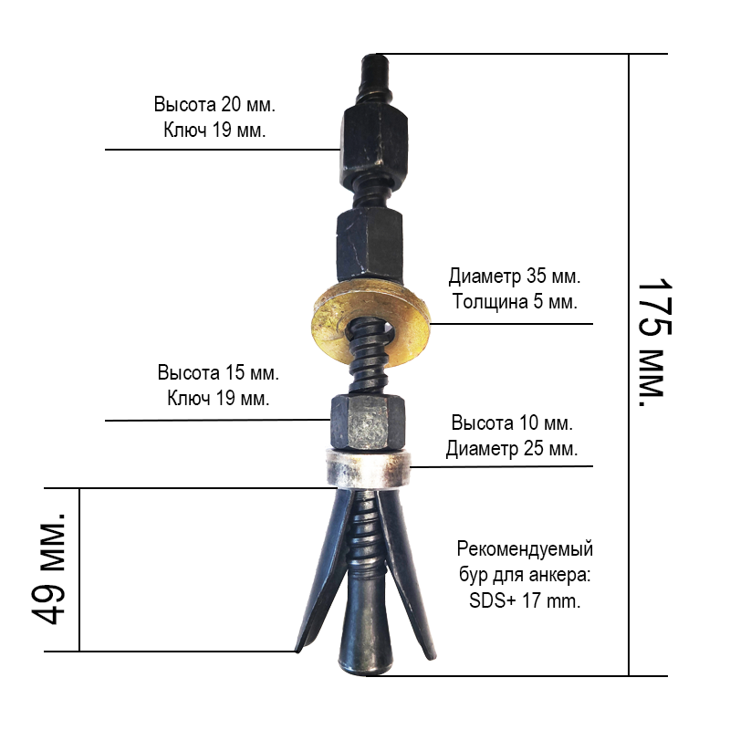 Анкер для алмазного бурения, многоразовый, длина 170 мм