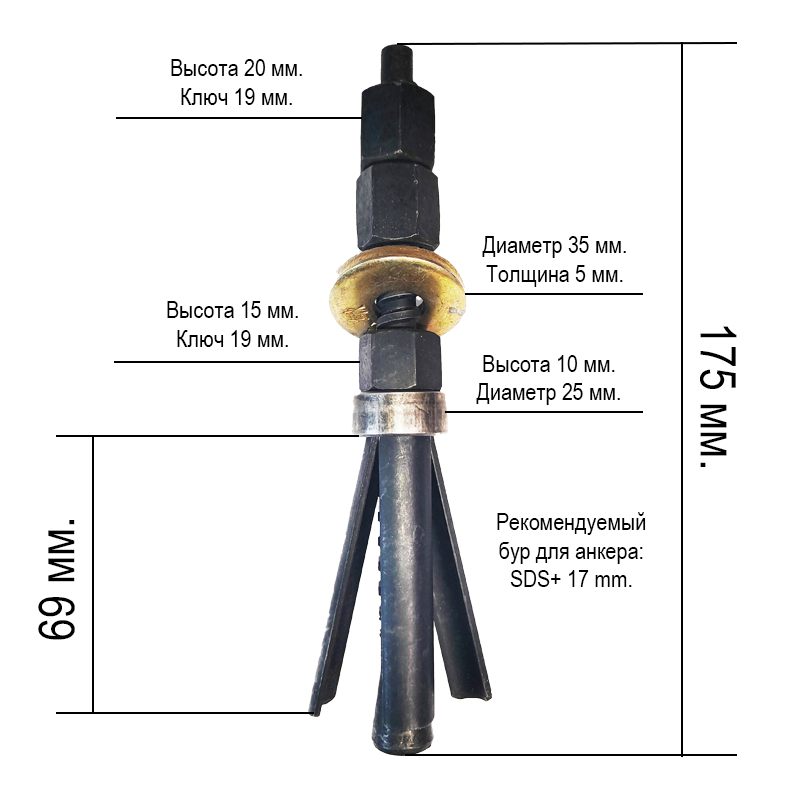 Идеальный диаметр отверстия под анкер — 17 мм.