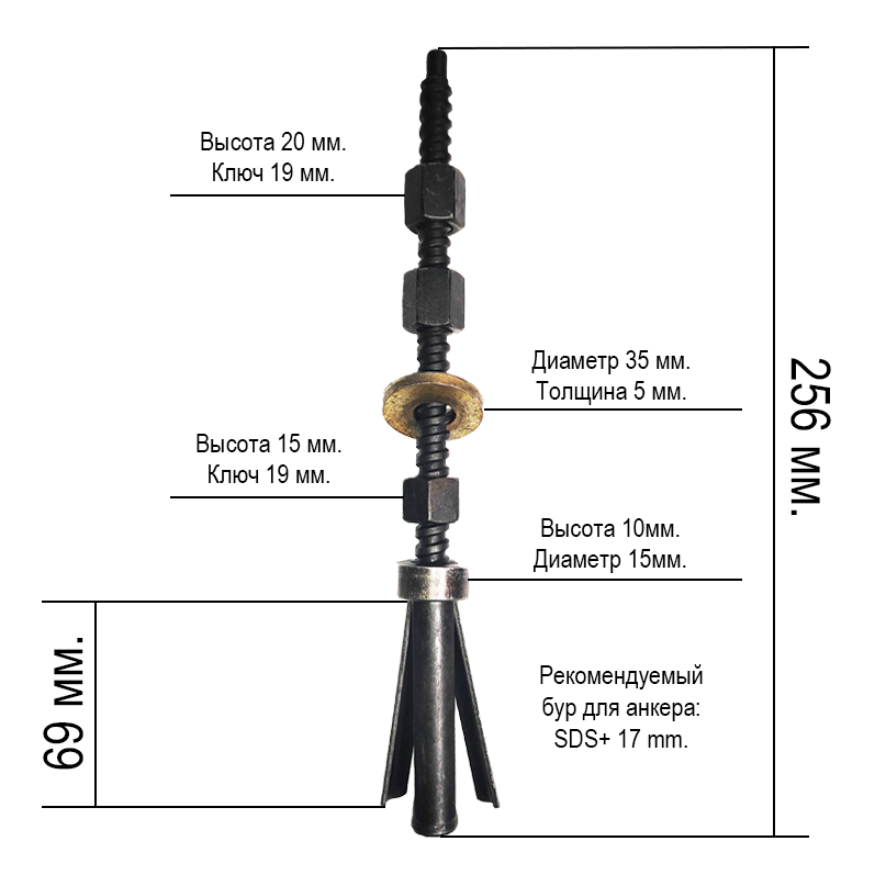 Анкер для алмазного бурения, многоразовый, длина 170 мм