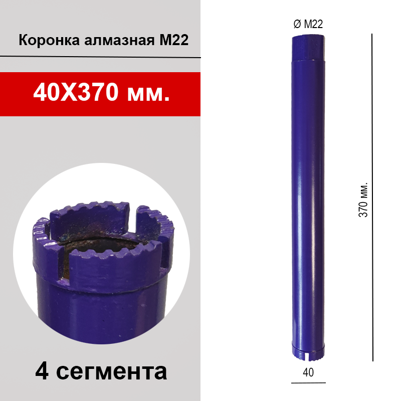 Коронка алмазная М22 56*450 мм. Сухой рез.